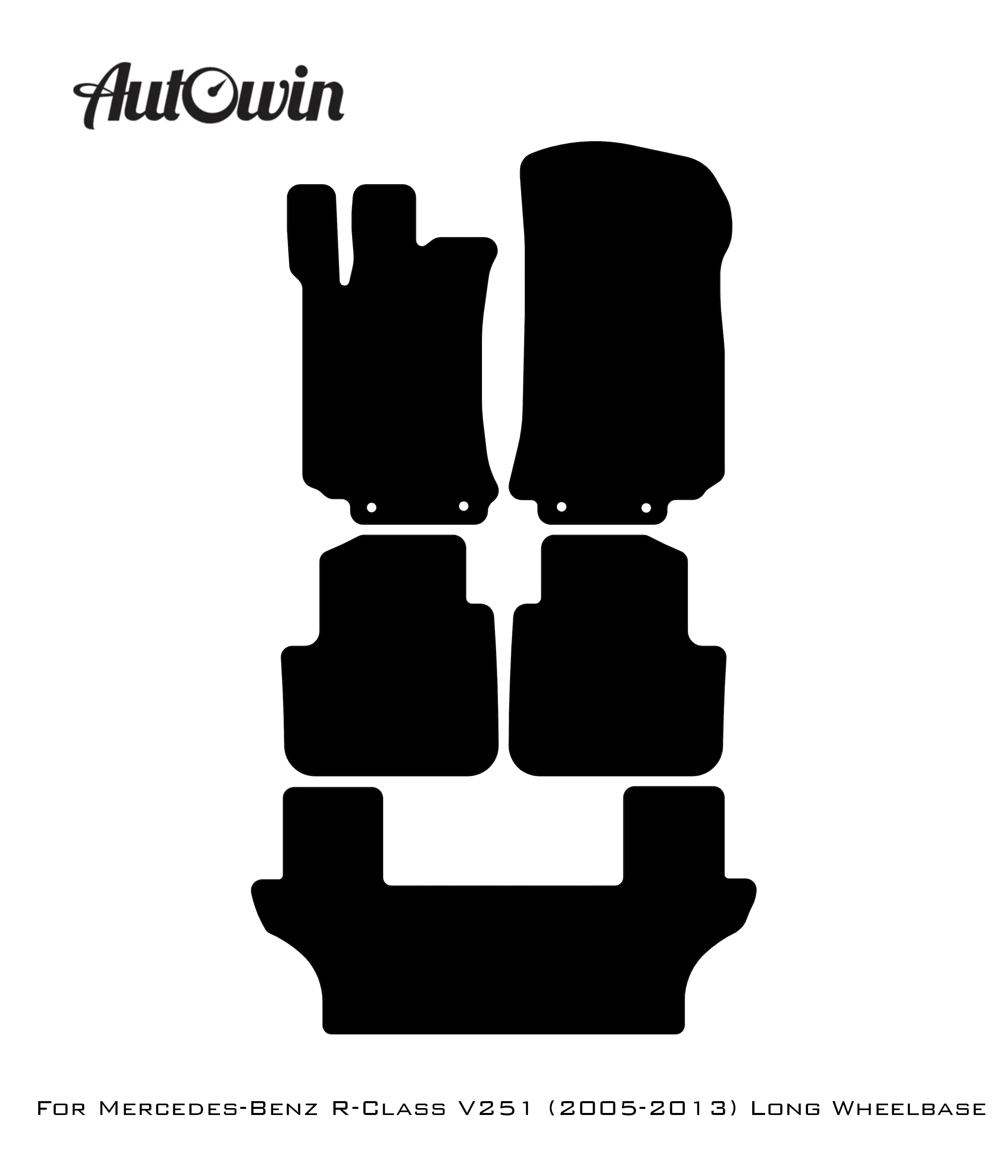 Tappetini in pelle nera per auto per Mercedes Benz R-Class V251 (2005-2013) a passo lungo | Design ER56