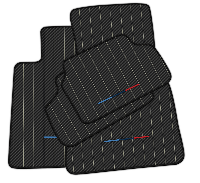 Die schwarzen Carbonfaser-Fußmatten für BMW verleihen Ihrem Fahrzeuginnenraum eine elegante und stilvolle Note. Hergestellt aus hochwertiger Carbonfaser mit Linienmuster und weißen Nähten sehen diese Matten nicht nur toll aus, sondern bieten auch Haltbarkeit und Schutz für den Fahrzeugboden. Mit dem zusätzlichen Detail der ikonischen M-Trikolore werten diese Matten den Look Ihres Fahrzeugs auf.