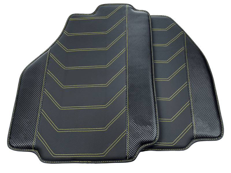 Leder-Fußmatten für Ferrari 458 Spider 2012–2015, Schwarz mit gelben Nähten