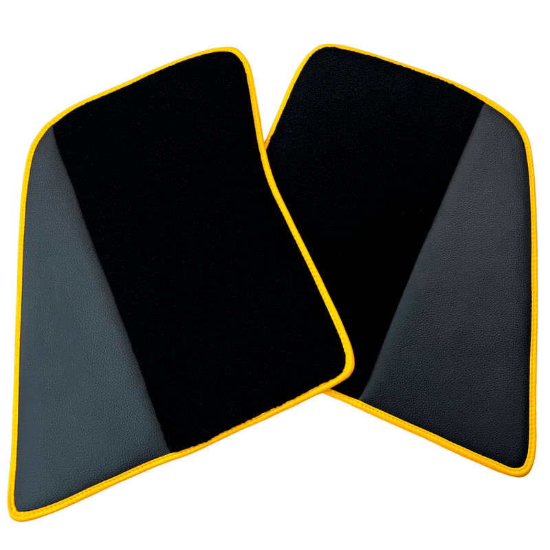 Black Floor Mats for Ferrari 296 GTB (2022-2025) with Leather and Yellow Trim