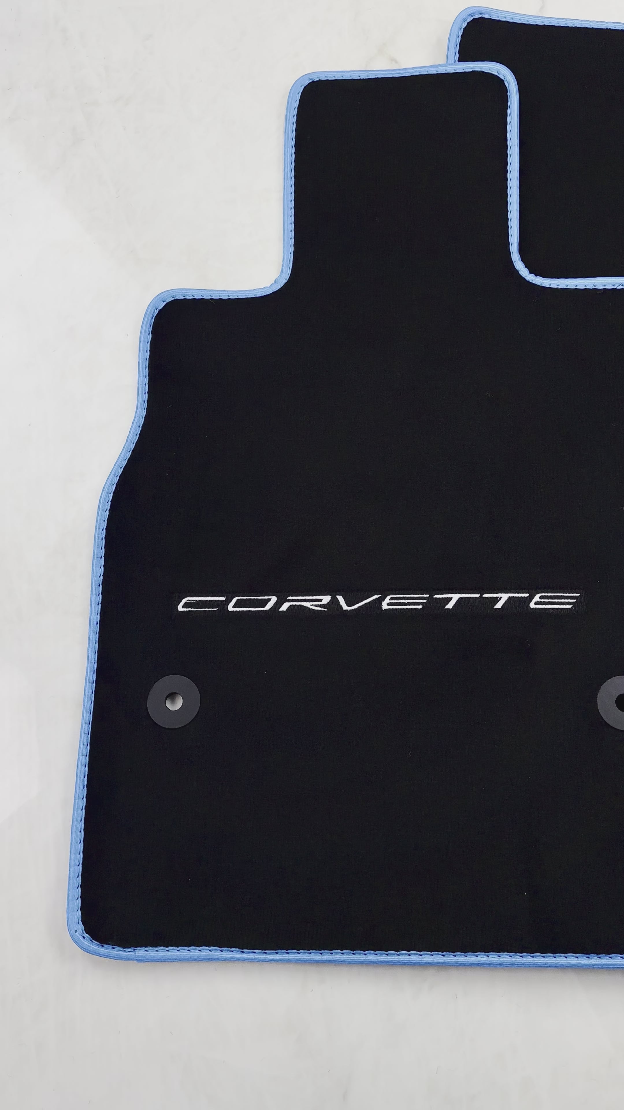 Creado a medida para el Chevrolet Corvette C8 (2020-2024), estas alfombrillas para coches cuentan con una superficie de nylon negro con borde azul para proteger el interior y ofrecer un aspecto elegante. Duraderas y fáciles de limpiar, estas alfombrillas están diseñadas para adaptarse a los contornos específicos de su vehículo.