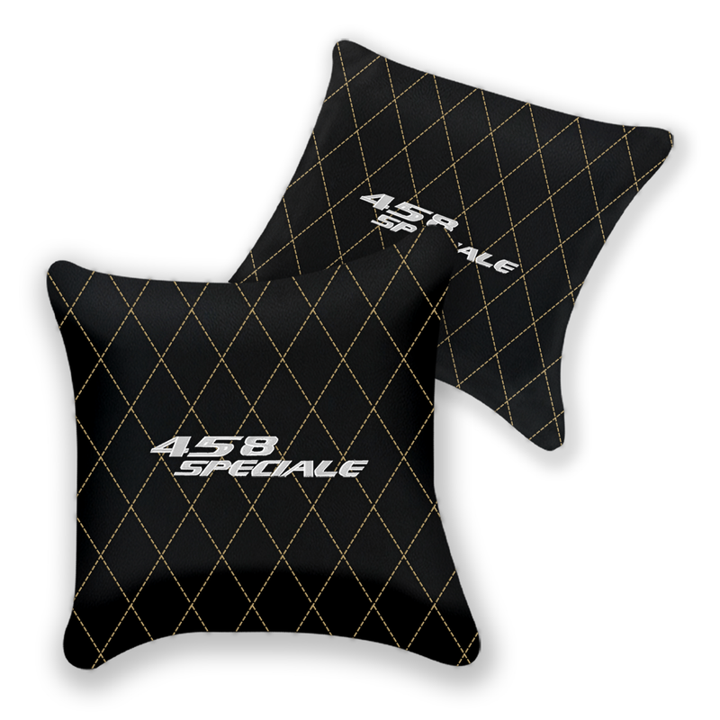 Enhance your Ferrari 458 Speciale (2012-2015) interior with this set of two customizable black leather pillows. Crafted for comfort and style, these pillows offer various stitching color options to perfectly match your vehicle’s aesthetic. They provide extra support during drives while adding a touch of personalized luxury to your car's cabin. Durable and elegant, they’re designed to blend seamlessly with your Ferrari's premium design.